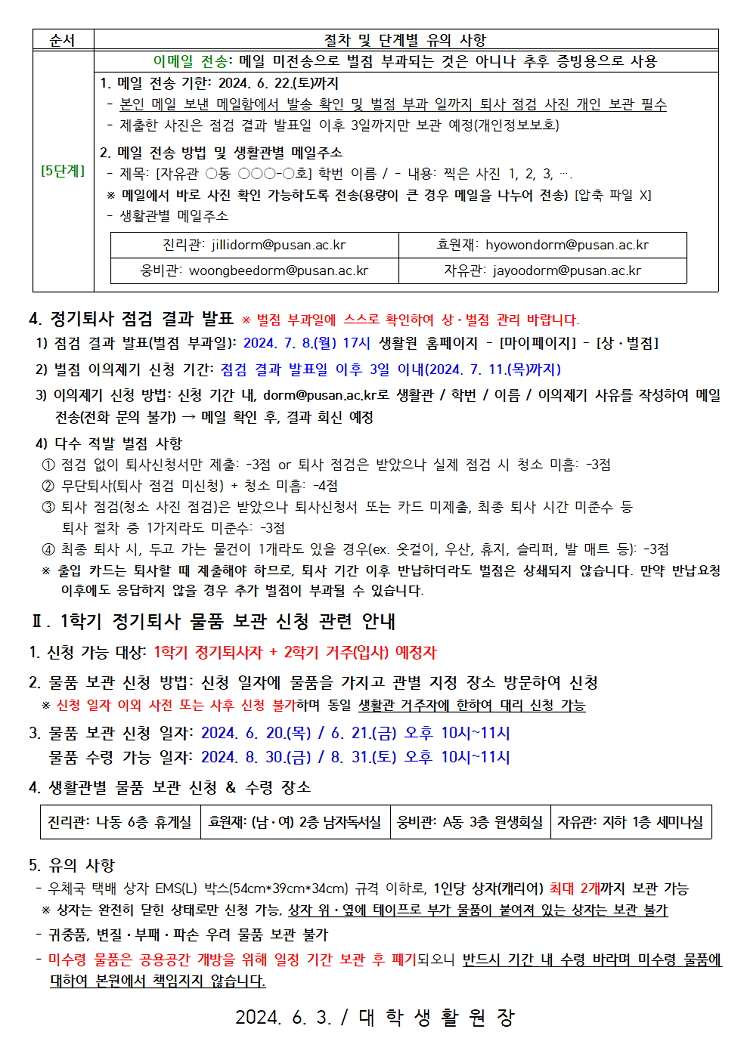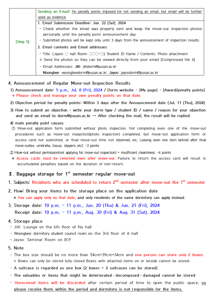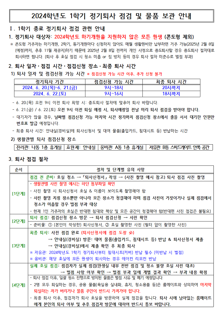 2024학년도 1학기 정기퇴사 점검 및 물품보관 안내 Notice about 24-1st semester regular move-out inspection & baggage storage