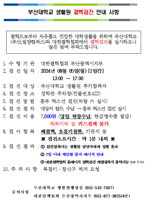 [전체공지] 24-2학기 비원생 합격자 대상 교내 결핵 검진 안내
