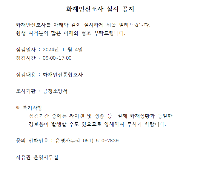 자유관 화재안전조사 실시 안내문.hwp (39.5 KB)