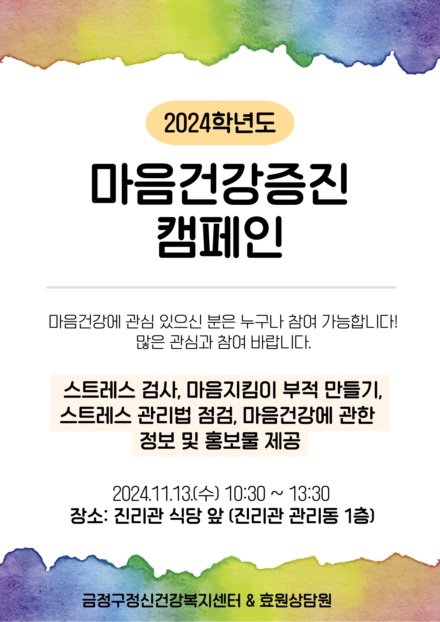 [금정구정신건강복지센터&효원상담원] 2024학년도마음건강증진캠페인 안내