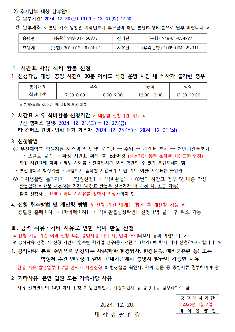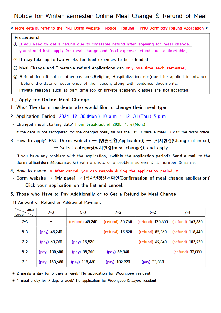 2024학년도 동기개원 온라인 식사변경 및 식비 환불 신청 안내 Notice for winter semester Online Meal Change & Refund of Meal.hwp (175.0 KB)