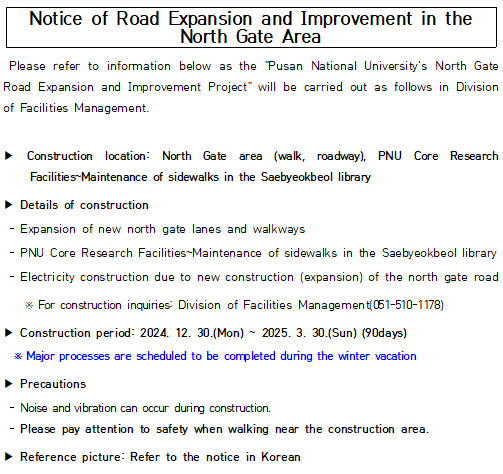 북문 일원 도로 확장 및 개선공사 Notice of Road Expansion and Improvement in the North Gate Area
