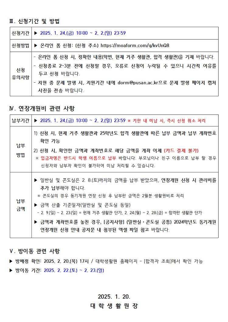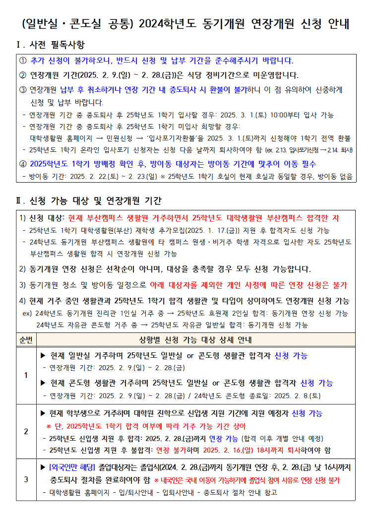 (일반실,콘도실 공통) 2024학년도 동기개원 연장개원 신청 안내