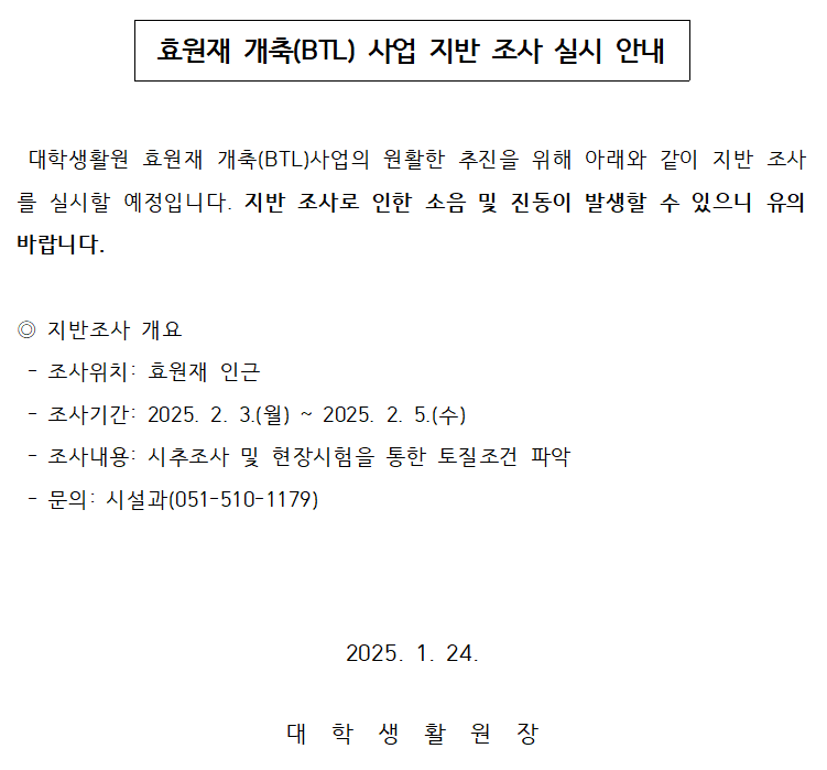 효원재 개축(BTL) 사업 지반 조사 실시 안내