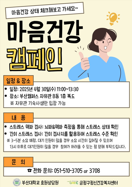 마음건강캠페인(스트레스 맥파·간이 스트레스 검사) 안내