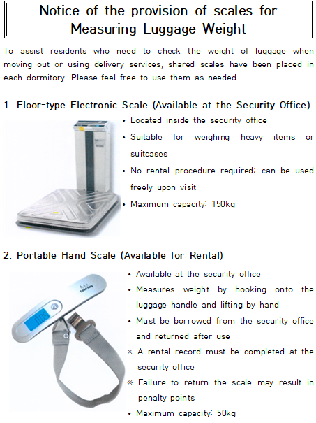 짐 무게 측정을 위한 저울 비치 안내 Notice of the provision scales for Measuring Luggage Weight