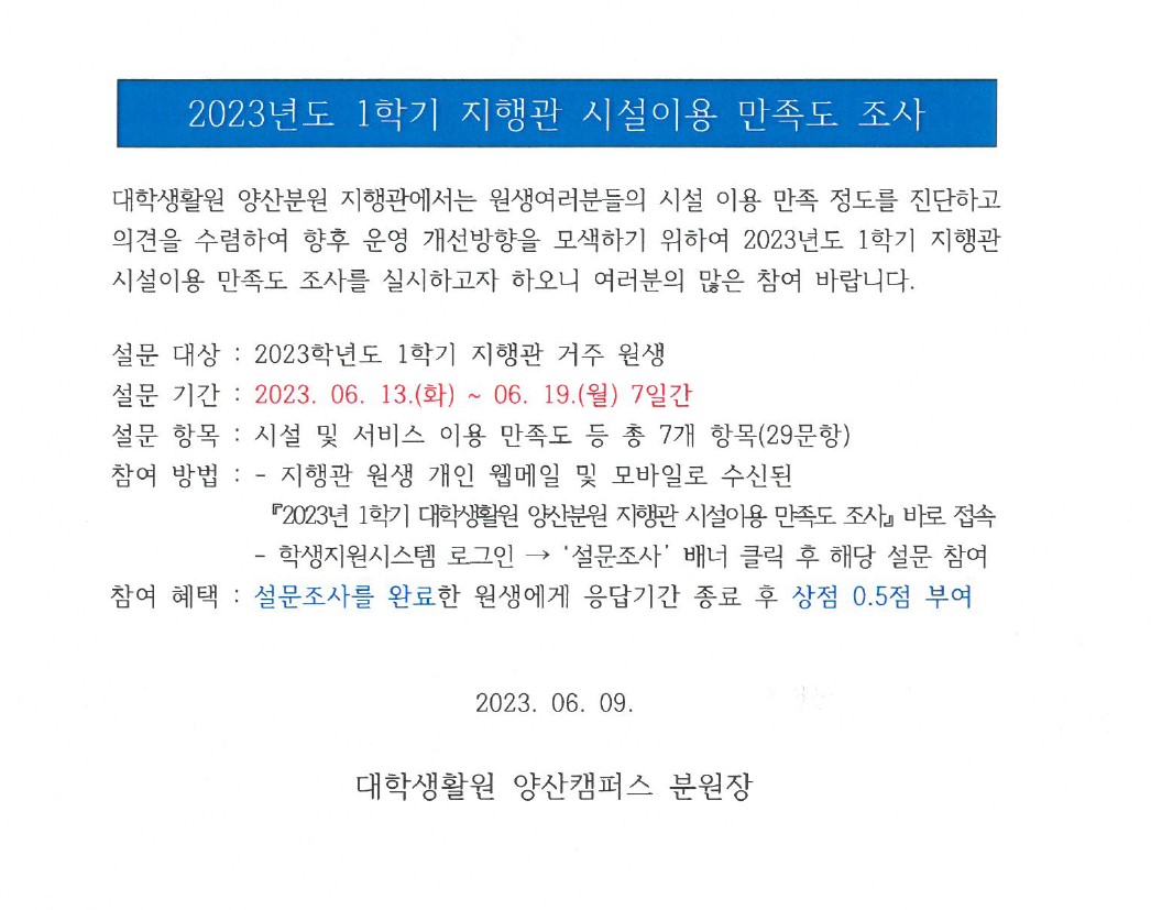 [설문조사] 2023년 1학기 지행관 시설이용 만족도 조사