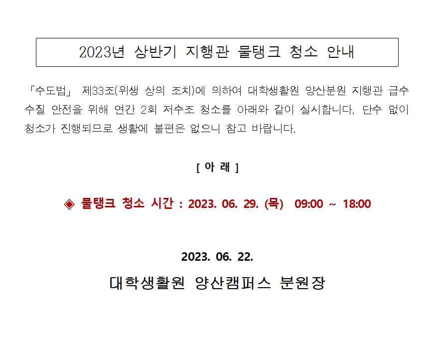 [지행관] 2023년 상반기 지행관 물탱크 청소 안내