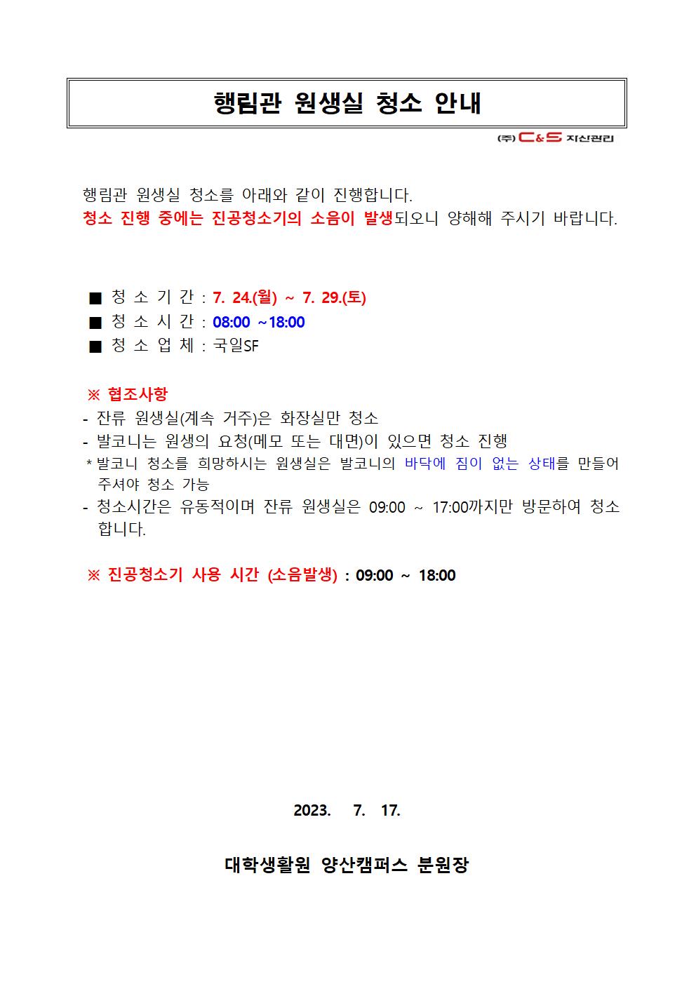 [행림관] 원생실 청소 안내
