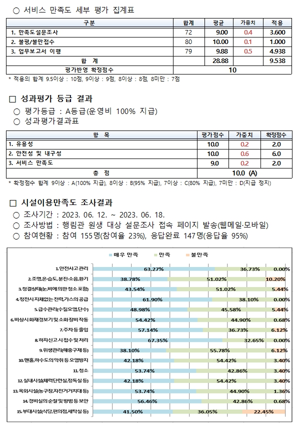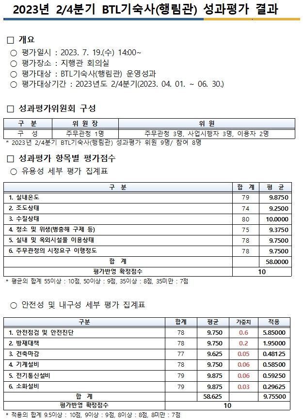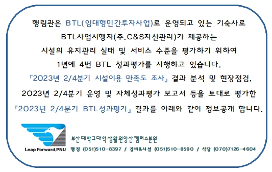 [정보공개] 2023년 2/4분기 BTL기숙사(행림관) 성과평가 결과