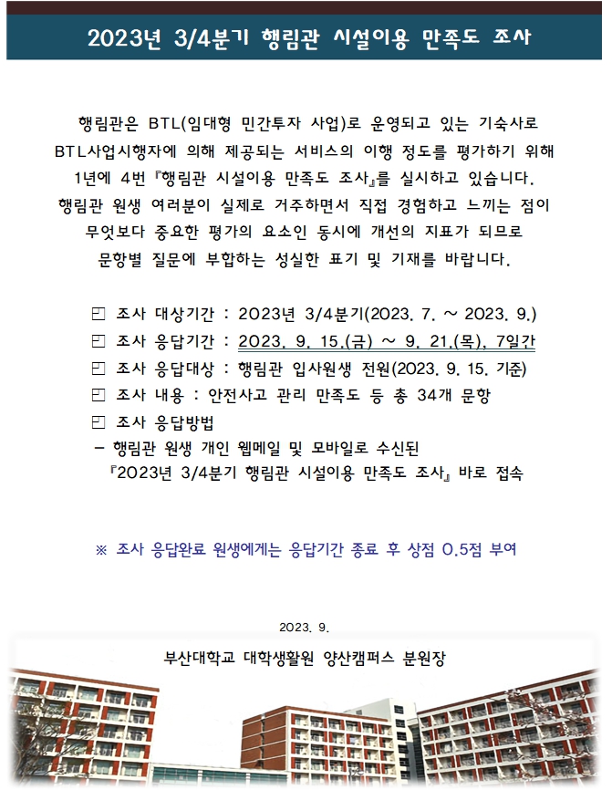 [설문조사] 2023년 3/4분기 시설이용 만족도 조사