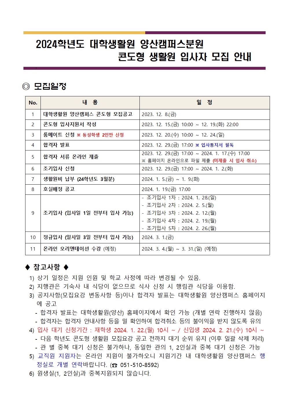 2024학년도 콘도형 입사자 모집 안내