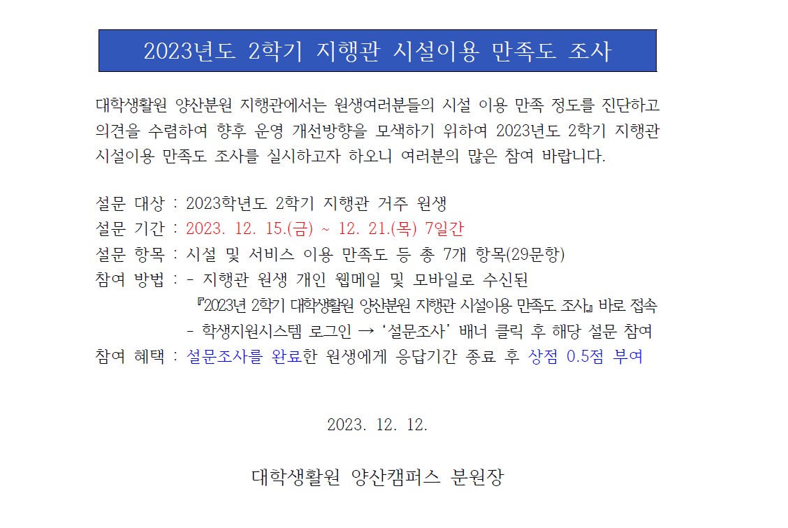 [설문조사] 2023년 2학기 지행관 시설이용 만족도 조사